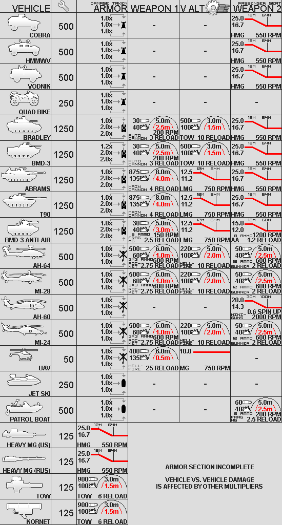 6. Броня танков и бмп слабее в задней части и по бокам, остальной наземный транспорт и вертолеты могут быть уничтожены с одного выстрела ракетой.